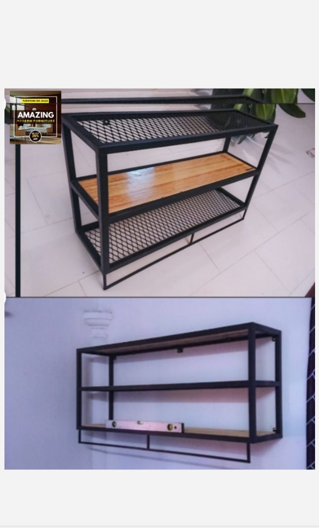 Rak Industri Design Kayu Dan Besi 3tingkat Furniture Home Living Furniture Shelves Cabinets Racks On Carousell